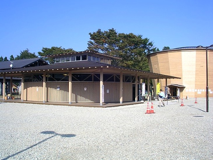 右(県道側)の変った建物がギャラリーと休憩所を兼ねた観光案内所。道の駅のメイン施設だ。