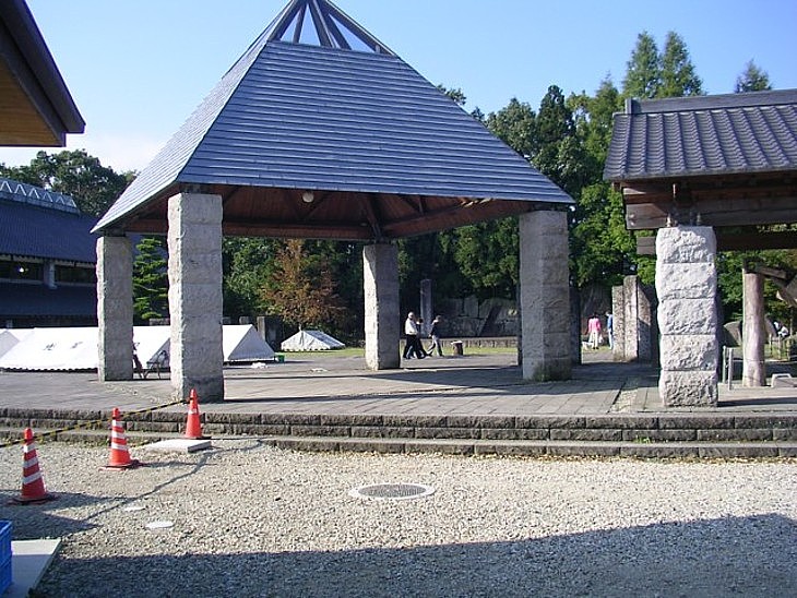 駅舎裏の石組み舞台も休憩に利用できる。夏ならば高原の日差しを避けて昼寝も楽しめそうだ。