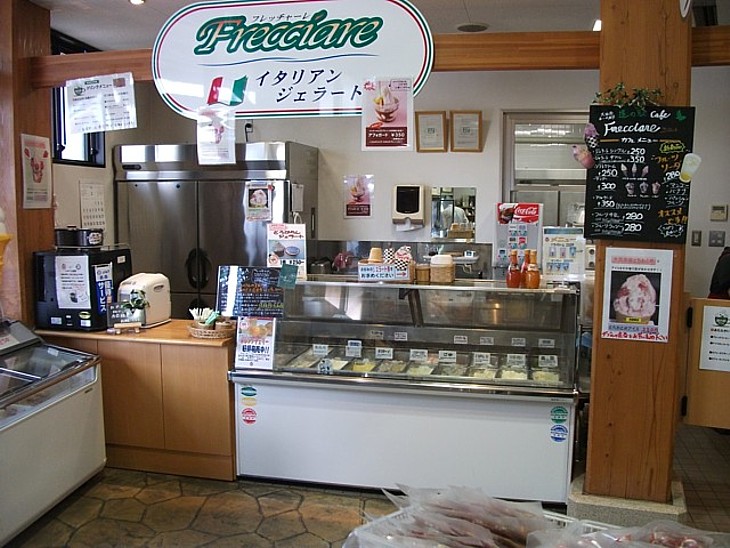 栃木県産素材のジェラートコーナー。黒豆や唐辛子を使った面白い種類も人気、シングルは250円。