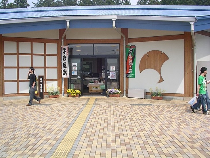 情報館と棟続きの左側が物産館(9時〜17時半)。豆腐やジェラート、農産・畜産物の加工品を扱う。