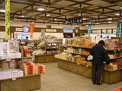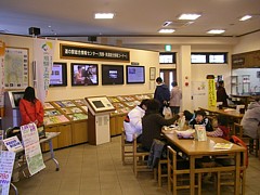 物販の営業時間中は軽食コーナーを兼ねた休憩施設が利用できる。休日は買い物客が多いが、ゆったりしたスペースだ。 | |