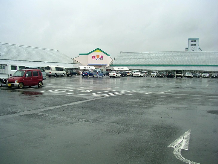柏崎市へ南下する国道460号沿いの水田地帯、駅の母体はJA新津の花卉総合センター。