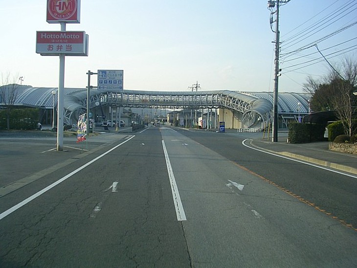 武田橋北詰で国道20号を右折し市街地を過ぎると、やがて銀色の歩道橋が見えてくる。