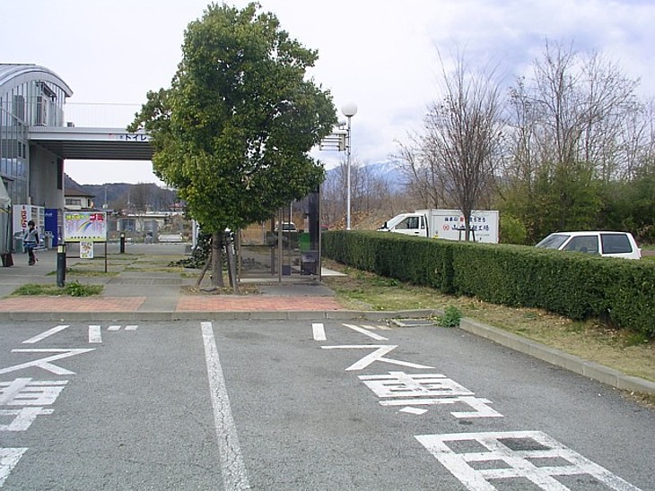 右側の観光バス専用スペース。トイレに近いため平然とここに停める不心得な車も多い。