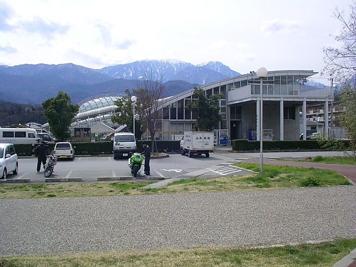 大型車用の横の駐車スペース。ここも快適だが夜は車の騒音が鬱陶しい。背景正面は仙丈ヶ岳(3033m)か。