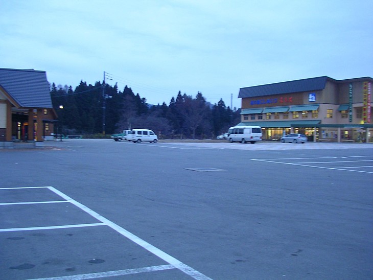 駐車場はフラットで広い。右に物産館と食事処のメイン駅舎、左の国道沿いに休憩と情報を兼ねたトイレ棟。