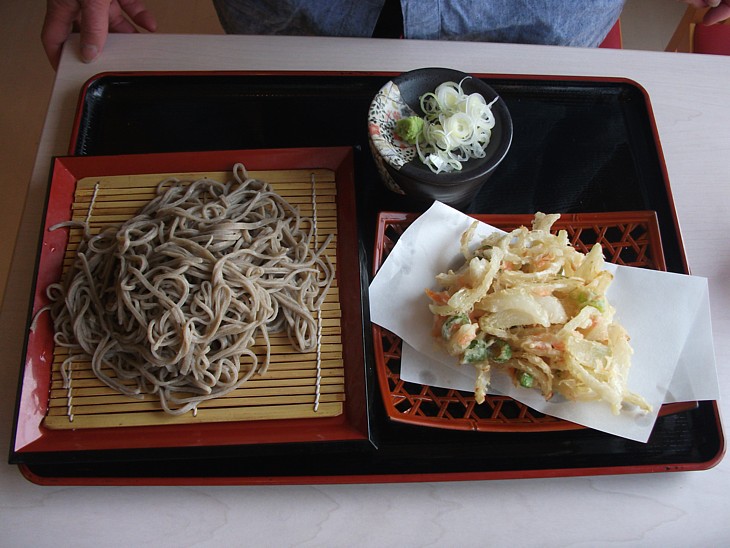 妻の注文「手打ちかき揚天そば・850円」。ブツブツ切れるのは水回しの不足、素人レベルの仕事らしい.。