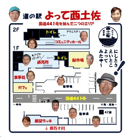 二階のコミュニティスペースが利用できる。トイレと広いバルコニーあり。駐車場側の展望デッキでは四万十川や対岸のホテル・ふれあいホールなども一望できる(テーブルセットも多数ある)。 |