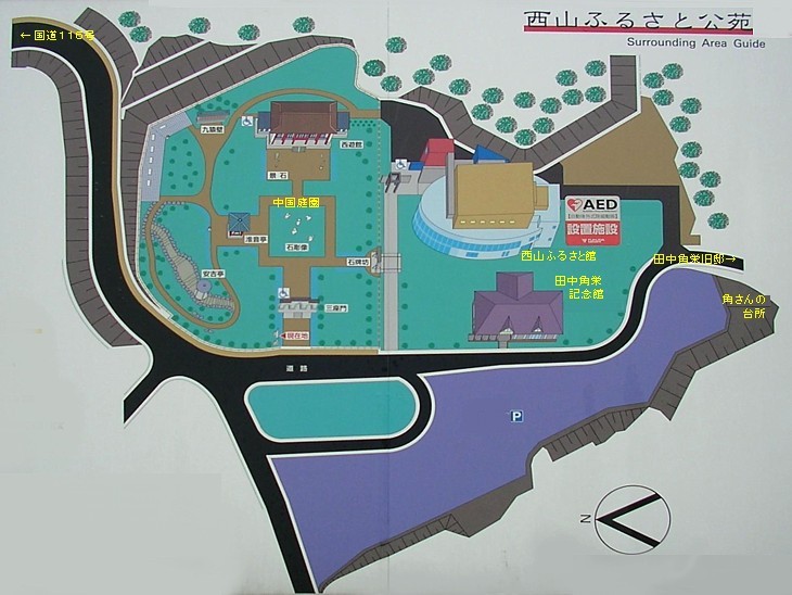公苑の全体図。現在は柏崎市の公共施設、角栄記念館のみ財団法人の独立採算となっている。