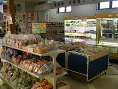 ● 8時半〜18時半・第1火曜と年末年始休、派手さのない地場産品がメイン。塩ワカメや塩鮭など、塩に関わる加工品も多い。 | |
