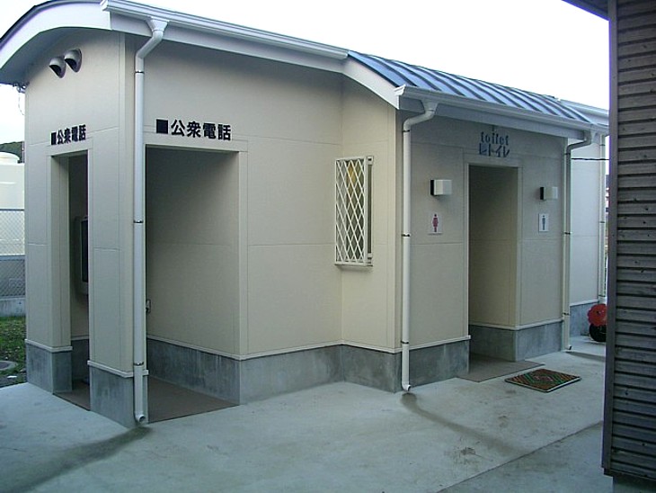 24時間トイレは公衆電話ボックスを併設している。営業中は駅舎内の「普通の」トイレが利用できる。