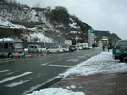 公称は大型車7台+普通車297台、国道沿いの敷地に隣接する海の資料館近くまで延びている。休日の駅舎周辺は慢性的に混雑するので、少し離れた場所に停める方が余裕が持てる。 | |