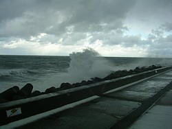 海沿いに広い緑地公園が整備されている。海辺には降りられないが、散歩コースだけは「うみてらす」よりも優れている。 | |