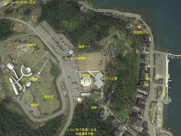 広い敷地に広い駅舎、すぐ前の丘には能登島ガラス美術館。水族館や臨海公園も近いから数日は楽しめる。
