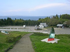 ガラス美術館の丘は軽い運動と散策に最適、水遊びしたければ200mほど歩けば静かな漁港のある海岸に下りられる。 |