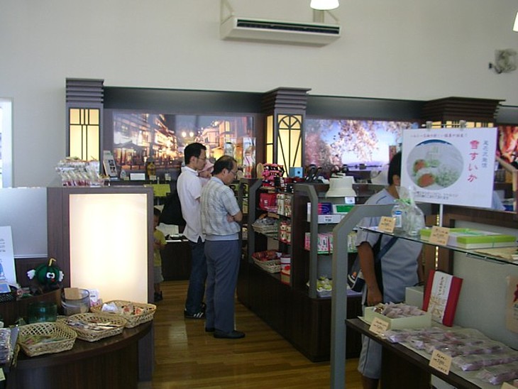 物産館は広いだけで品揃えが平凡。手作り惣菜や弁当類や餅菓子など、道の駅らしい商品は少ない。