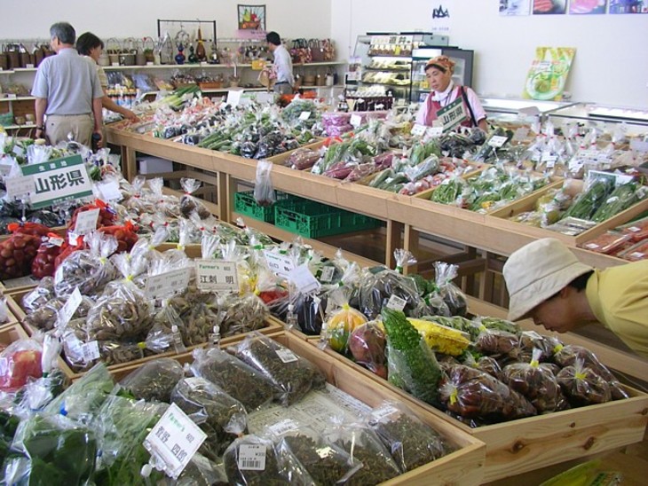 物産館に比べると産直野菜は品揃えが豊富で価格も安い。平日の午後にしては客数も多かった。