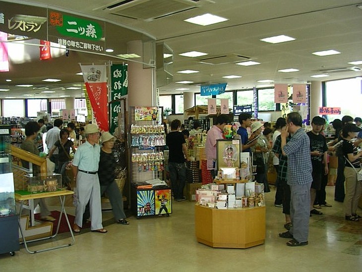 駅舎の一階は物産館、階段を登った二階が食事処。商品は豊富で、さすがに休日には買い物客の数も多い。