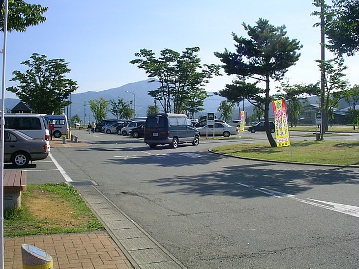 駐車場は樹木と芝生で区分されており、暑い季節にはささやかな日陰もありがたい。大きく繁る頃が楽しみ。