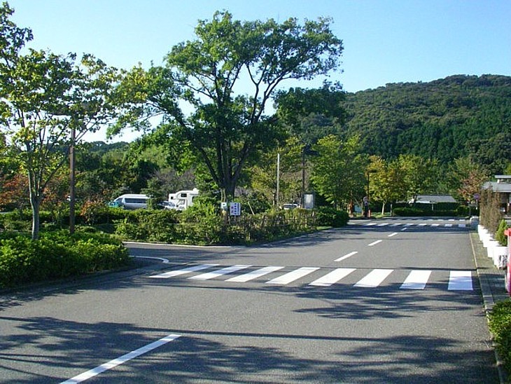 メイン駐車場は植え込みで仕切った静かな一角で、大型車用の駐車スペースは完全に分離されている。