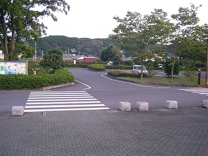 イベント広場からから。左側が主として大型車用、少し先の右側入口は普通車用として利用されている。
