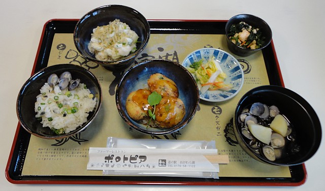 10〜16時(冬は15時半)、約50席の清潔な雰囲気、小型の駅では普通のメニューで小河原湖のシジミを使った献立が特徴。 | |