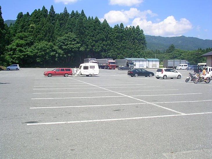 積雪期にはチェーン脱着場や除雪の基地に使う関係からか、大型車の駐車場が敷地の右半分を占めている。