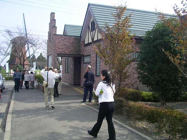 煉瓦風のしゃれた別棟トイレは設備も管理も合格点。
