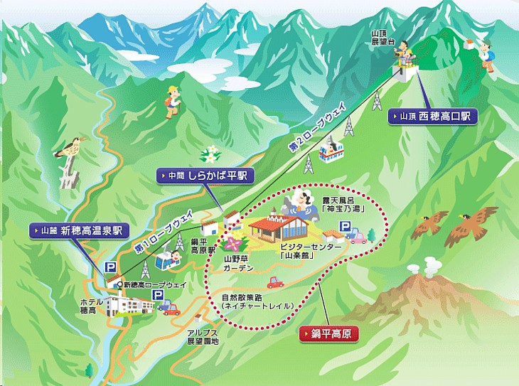 時間があれば新穂高ロープウェイで標高2156mの終点・西穂高口へ。駐車と合わせて往復3400円は高いが天候に恵まれれば別世界の眺望を味わえる。 | |