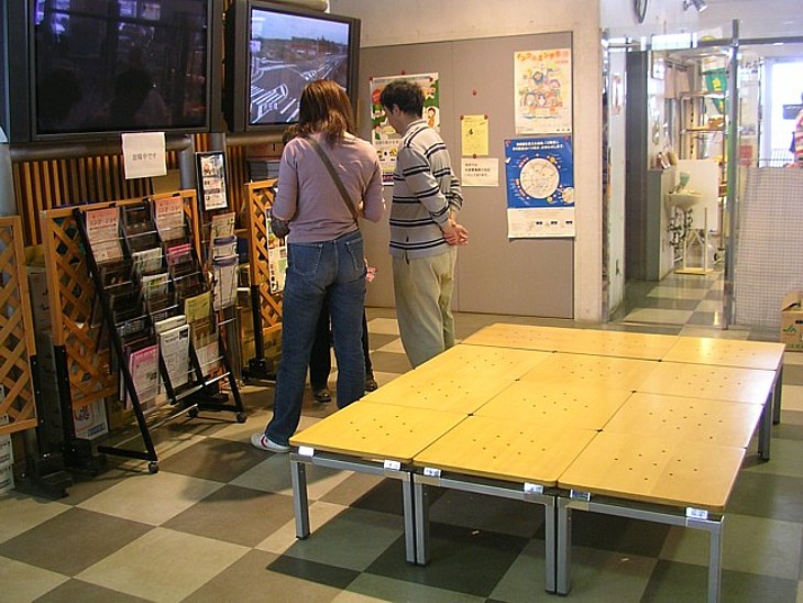 パン店横の狭いスペースが唯一の休憩を兼ねた情報コーナー。大型の駅としては最悪の部類だ。