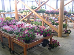 右: 10坪ほどの室内園芸コーナーもあるが種類も点数も少なくて物足りない。セキチュー(10km)かスーパービバホーム(7km)までなら気楽に