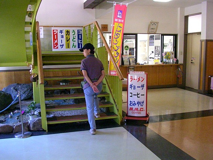 二階へ続く階段。もっと地域色をアピールできる食材があれば良いのに...などと思う。