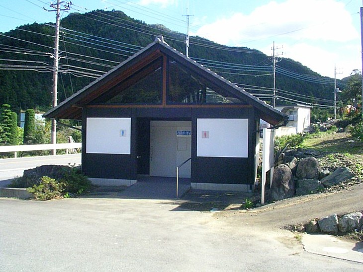 蕎麦処の駐車場左隅に道の駅と兼用しているトイレがある。残念ながら管理は良くない。
