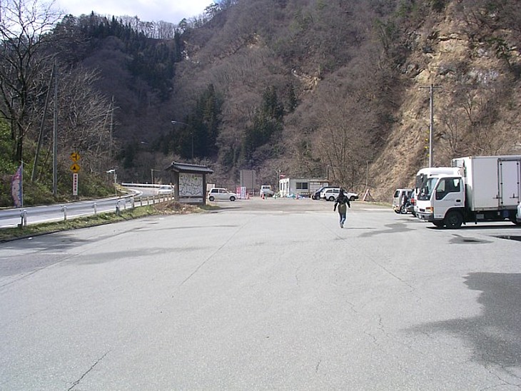 駅舎左側の駐車場は広い。雨が続くと土砂崩れや冠水の多い地域、土木の現場事務所が常設されている。