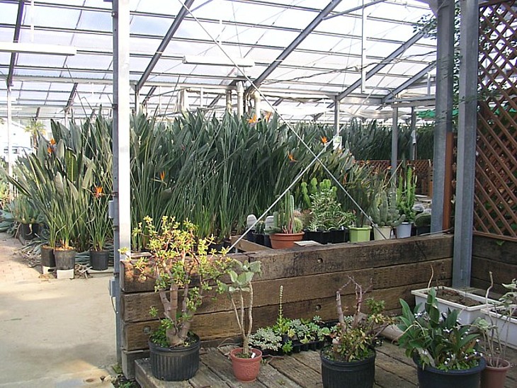 農園入口のガラス温室。この先は4,000坪のビニール温室、花や観葉やフルーツが栽培されている。