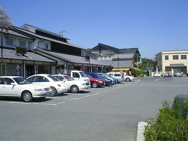 駅舎左隅の食事処前から。植え込みの横なら落ち着ける。中型車程度までならP泊が可能だ。