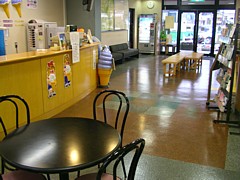 地図が貼られているだけで殺風景だが24時間開いている。物販とは区切られ、朝9時になる仕切りのシャッターが開く仕組み。 | |