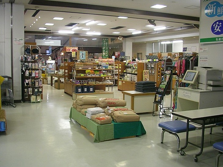 宮城県の道の駅 「おおさと」 物産コーナーの横にもベンチがあり軽い休憩に利用できる。