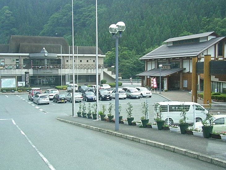 誘導路の突き当りに大滝振興会館、右に物産兼食事処の郷路館、歴史民俗資料館(200円)、遊湯館が並ぶ。