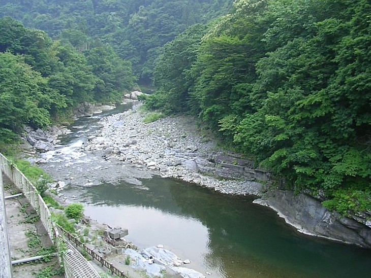 駅の敷地から河原の河原まで石段で降りられる。荒川の源流に近いが、流れは緩やかで水遊びも可能だ。