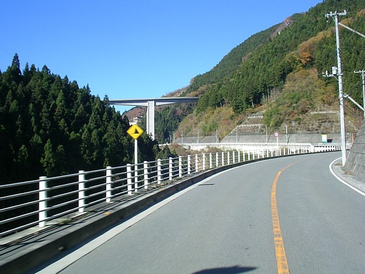 国道140号は更に西へ、滝沢ダムを背景にしたループ橋はダムサイトまでの高低差120mを一気に駆け上がる。