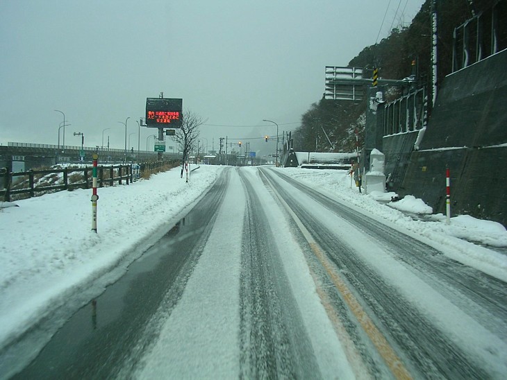 ここから先は2007年冬のスナップ。市振側から峠を下って道の駅入口の信号に近付いて行く。