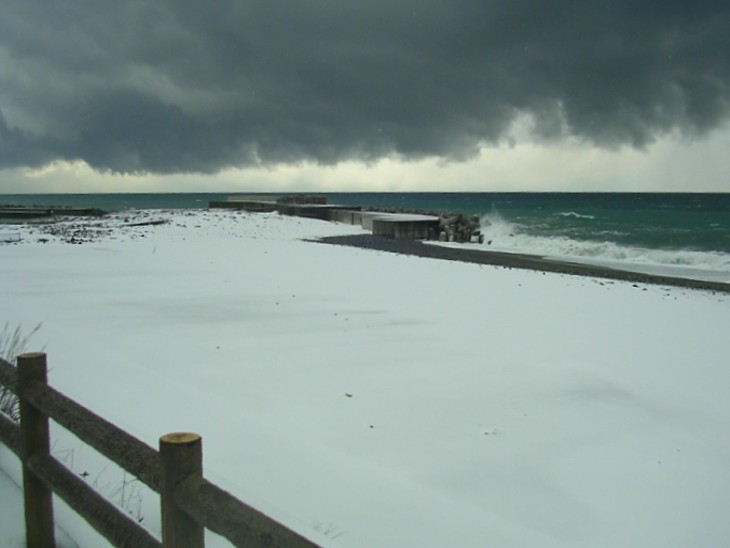 この時の親不知漁港はまだ工事中、前回訪問の際は真っ青だった空も黒い雲に覆われている。