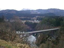 ● 3km西で只見線ガードを抜けた少し先(ルート地図)の右奥に町営の 桐の里倶楽部、11〜20時・無休、展望の良い内湯のみ・ | |