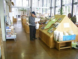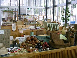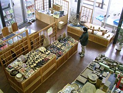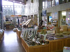 ● 8〜19時(冬は18時)、桐下駄・桐箪笥・民芸品などの展示は面白い。伝統工芸品・山菜・きのこなどが主力商品だ。 | |