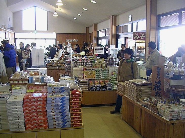 手前が土産物、奥の道路沿いが農産品の直売所。