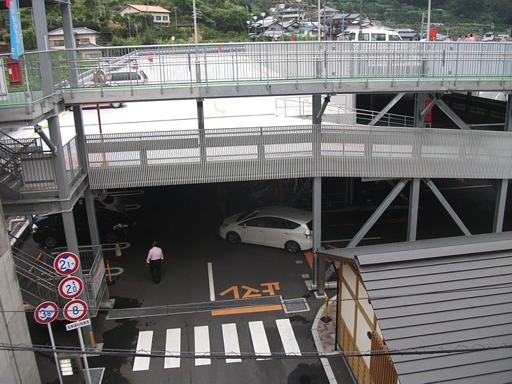 SAの連絡通路から立体駐車場のスロープ部分を。収容力が42台から公称261台に増え渋滞が少し緩和した。