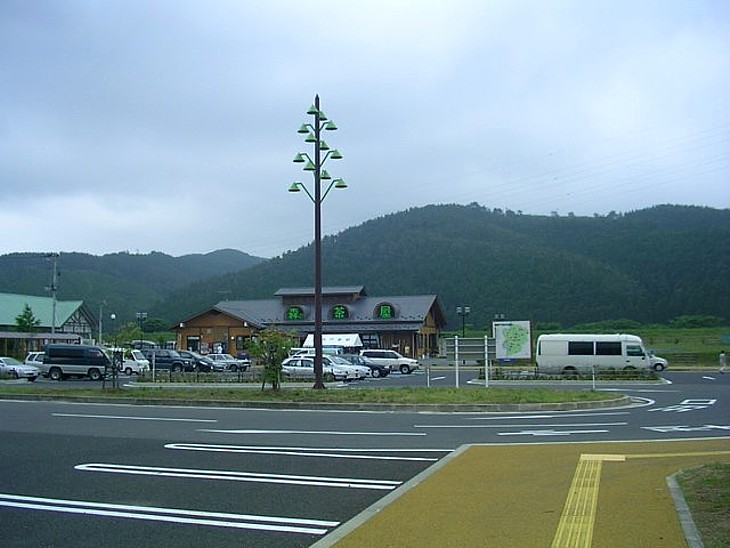 市役所支所の右が福祉センター、更に食事処を兼ねた物産館。広い駐車場は大型車が分離され使いやすい。