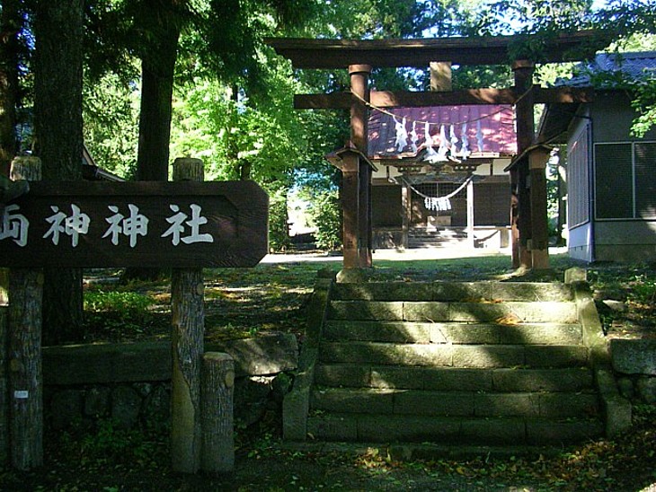 東にある両神神社。秩父平氏・丹党の本領で薄氏の守護神社。すぐ横には駅名の元・法養寺薬師堂も建つ。