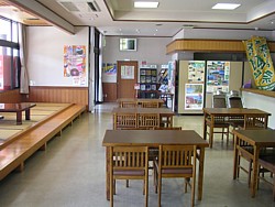 以前の食事処が右手の交流施設に移ったため、食堂の旧施設を利用している。もちろん弁当持参も可能、実に広くて快適だ。 | |